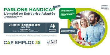 Cap emploi 35 organise la 4ᵉ édition de “Parlons Handicap : L’emploi en Entreprise Adaptée”, à destination des prescripteurs du bassin rennais le vendredi 10 octobre de 8h30 à 17h15 dans les locaux de Cap emploi 35.