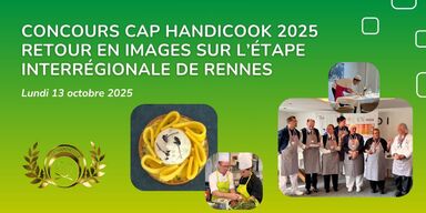 Grand concours national culinaire à destination des personnes en situation de handicap Cap Handicook édition 2025 avec la quatrième étape interrégionale Ouest qui s’est tenue à Rennes dans les cuisines de la prestigieuse école Ferrandi, le 13 octobre avec la participation de 5 équipes composées de candidats Cap emploi -…