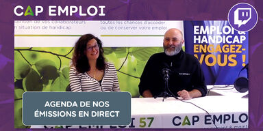 Nous avons créé une chaîne Twitch Cap emploi afin de pouvoir dialoguer avec vous, en direct. Tous les mercredis à 16h, accompagné d'invité(e)s, Guillaume répondra à vos questions sur le handicap et sur l'emploi.